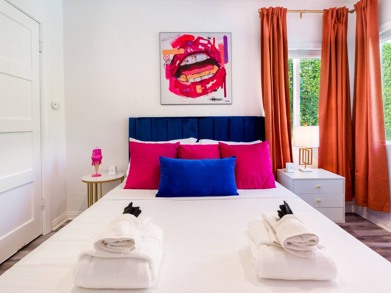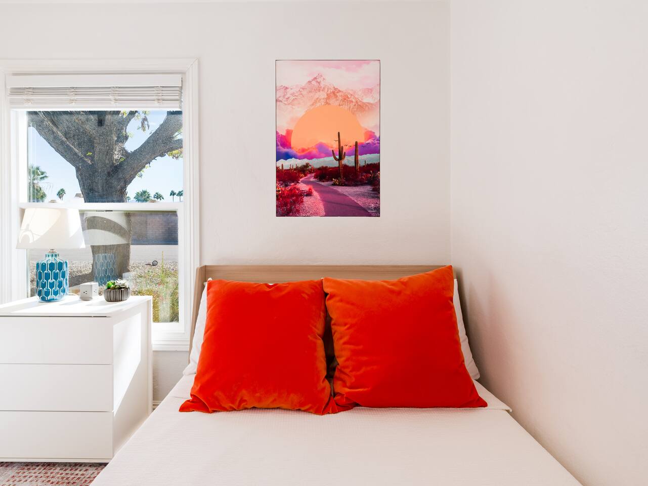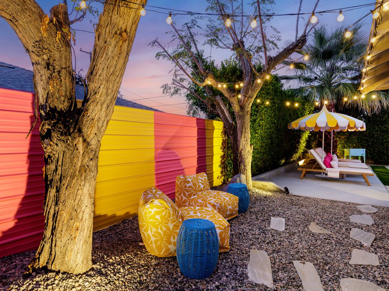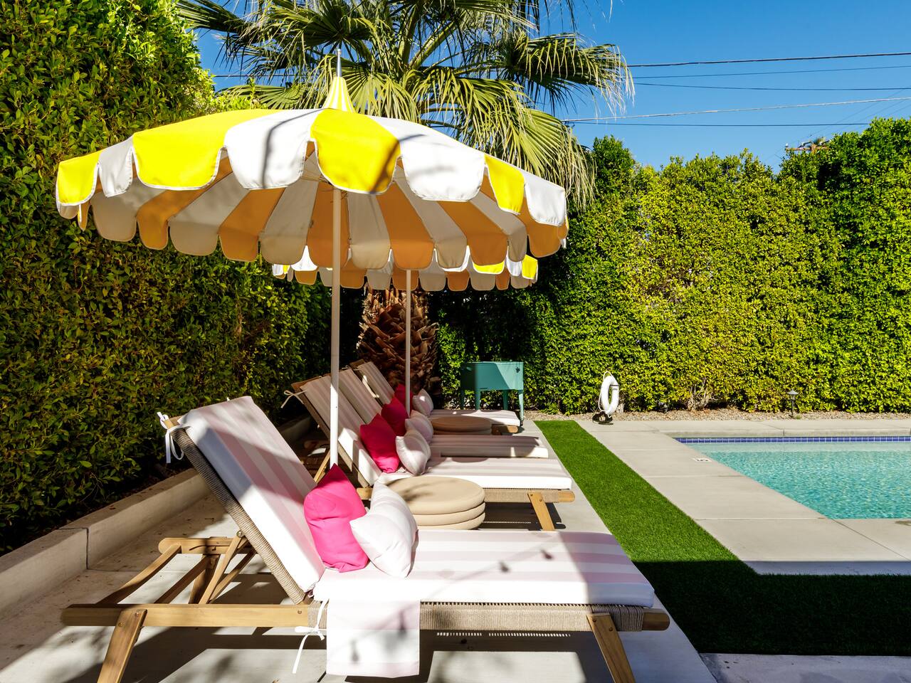 Step into a world of bold colors, pop art décor, and open-concept living. The home’s fully stocked kitchen, spacious dining area, and bright living room flow seamlessly together, creating the perfect backdrop for gathering with family and friends. -Master Suite: King bed + luxe en-suite bath with marble tile -Bedroom 2: Two twin beds -Bedroom 3: Two full beds -Bedroom 4: One queen bed Guest Bath: Shower/tub combo Every detail is designed for comfort, from plush beds to modern bathrooms stocked with essentials. 🌞 Outdoor Oasis Your private backyard was made for desert living. Spend your days lounging poolside, dipping into the bubbling hot tub, or soaking up sweeping south- and west-facing mountain views. ✨ Features include: -Large heated pool (no extra fee!) -Hot tub with stunning views -Outdoor Shower -Hammock + loungers for sunbathing -Gazebo for shaded relaxation -BBQ grill for cookouts -Fire pit for cozy evenings under the stars Pool floats for fun in the sun Bonus: You can even spot the world-famous Bob Hope House from the property. 🌟 Location Highlights Pop Art Oasis is perfectly located for both relaxation and adventure: 🚶♂️ 0.5 miles to Demuth Park ✈️ 0.6 miles to Palm Springs International Airport 🏌️ 1.8 miles to Tahquitz Creek Golf Course 🎤 2.8 miles to Palm Springs Convention Center 🌵 1-hour drive to Joshua Tree National Park 🚗 7 minutes, 2.3 miles going to Demuth Park Pickleball court 💡 Guest Perks Self-check-in with smart lock Complimentary fast WiFi Washer/dryer with detergent provided Free street & driveway parking Shampoo, conditioner & body wash included ⚠️ Things to Note NO extra charge for pool/spa heating Palm Springs enforces a strict no amplified outdoor music/noise ordinance (fines apply) Max overnight guests: 8 | Max daytime guests: 12 12.5% city tax applies for stays under 28 days (collected separately) Some airplane noise may be heard (the airport is just 3 minutes away) Where you’ll be Neighborhood highlights Walking distance to playgrounds, racquetball, & indoor A/C basketball court! 0.5 miles from Demuth Park 0.6 miles from Palm Springs International Airport 1.8 miles from Tahquitz Creek Golf Course 2.8 miles from Palm Springs Convention Center